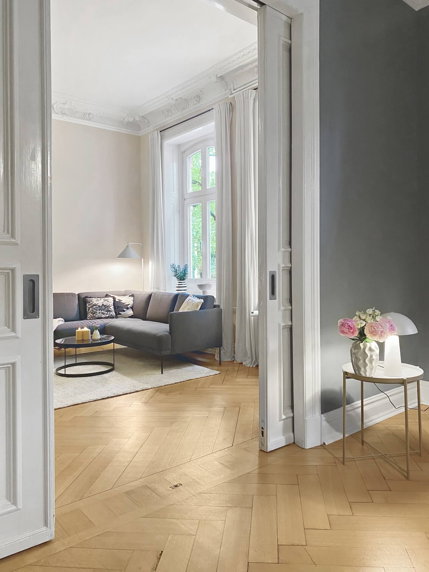Schon immer hatte ich ein Händchen dafür, Räumen eine besondere Atmosphäre zu verleihen. In unserer wunderschönen Altbauwohnung mitten in Hamburg, die durch hohe Decken, kunstvollen Stuck sowie einen charmanten Mix aus Pinienholzboden und Fischgrätenparkett beeindruckt, gestalte ich regelmäßig unsere Wohnräume um – stets auf der Suche nach neuen Perspektiven und der optimalen Raumnutzung.